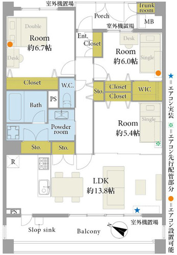 エアコン(1基)、スイッチ・コンセント、照明器具