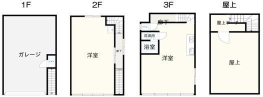 □鉄骨造3階建て□屋上あり□電動シャッター付ガレージ