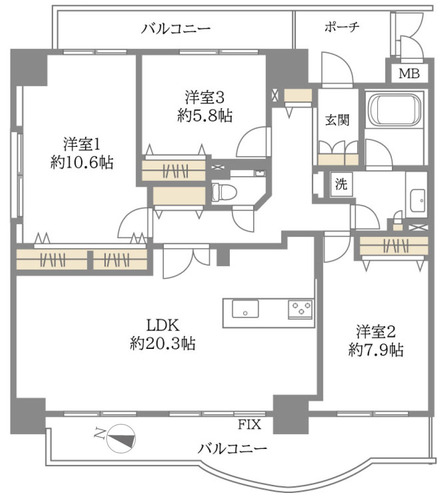 □南西向き□角部屋□2面バルコニー